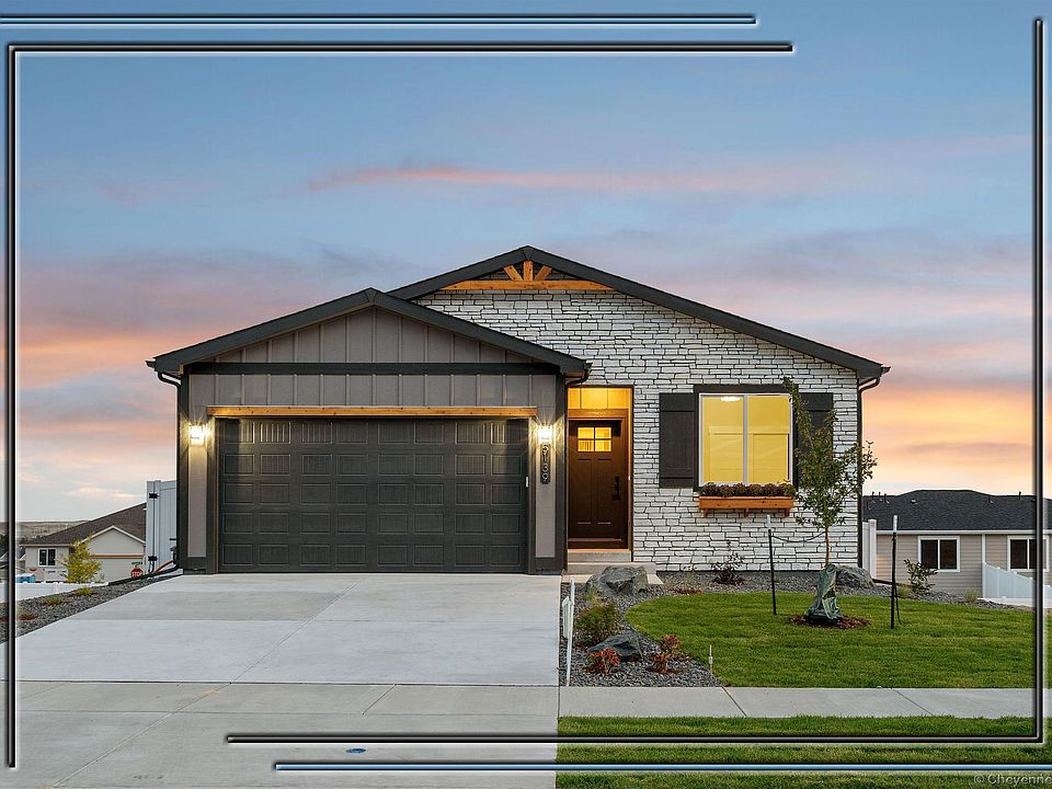 Brand new watercress floor plan from Homes by Guardian! This home features an open concept with ample space for entertaining. The finished basement is perfect for cozy movie nights and out of town guests. Enjoy the beautiful city views from the covered deck and fully landscaped yard. The location is close to the greenway for enjoying the outdoor opportunities of Cheyenne along with close proximity to shopping and schools. The full appliance package that comes with the home includes the washer and dryer and the best warranty in Cheyenne. This home truly offers an amazing place to call home. Let us schedule your private showing and tell you all about the exciting Whitney Ranch and the special financing Homes By Guardian Offers!