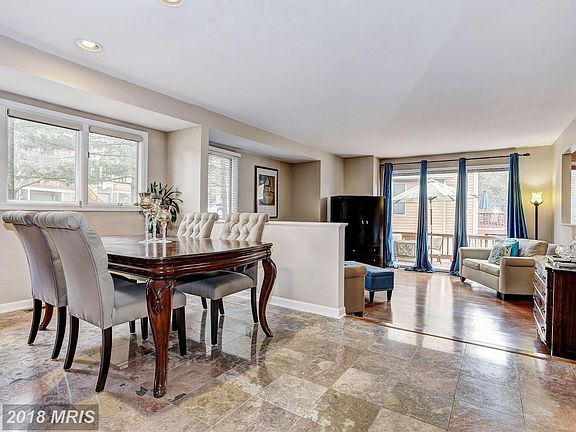 Beautiful light filled end unit townhome featuring an amazingly updated KIT w/Kenmore SS appls, silestone counters& decorative backsplash. Living rm w/French doors leading to deck. Gleaming hrdwd floors on upper level. MBD w/vaulted ceiling, skylights& exquisite bath. LL family rm w/FP& patio access. Fairway Hills Golf Course only moments away. Updates: KIT, roof, MBA, lower lvl& hrdwd flrs.