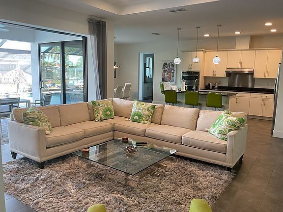 Spacious 4 Bedroom (one room is a den with sleeper sofa) offers comfortable sleeping for 8 adults. Three full bathrooms and a fully stocked kitchen add to the luxury of your stay. A large pool and spa with plenty of gathering space outside. The dock offers a boat-lift and access to the gulf in minutes. Perfect spot for seasonal renters and family vacations.