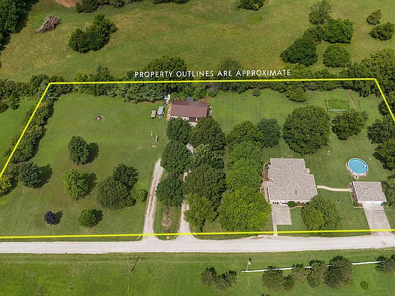 Welcome to 5139 S. Sunny Acre Dr! This stunning property offers features and amenities that are hard to match at this price point. With 3 bedrooms, 2.5 baths, a large shop building, and a 2-car garage, it sits on unrestricted acreage and includes a spotless above-ground pool, raised flower beds, a greenhouse, and a full irrigation system in the yard. Inside, you'll find a living room with soaring beamed ceilings and a cozy gas fireplace, a newly updated kitchen with gorgeous granite countertops and newer appliances, and a spacious master suite with a walk-in shower and private toilet area. There's also a 20x20 bonus room with built-in, floor-to-ceiling bookshelves, perfect for entertaining or personal use. Enjoy peaceful views from any of the covered patios. The property boasts a new roof installed in 2021 and a new HVAC system in 2020. The all-brick, fully insulated 2-car garage features a utility sink, a finished attic for storage, and an exterior 30 amp RV hookup, with a new roof installed in 2021. The circle drive provides plenty of room for large vehicles, trailers, RVs/campers, and boats. The 30x50 outbuilding, only 2 years old, includes a 25x30 shop with a concrete floor, 220v power, water supply, and a bathroom stub, as well as two 12ft garage doors for additional storage. Additional amenities include a custom-built chicken coop, beautiful trees including weeping willows, and garden areas that have produced an abundance of vegetables and fruits. Located just 23 miles from Springfield and 7.5 miles from Bolivar, this property is a must-see!