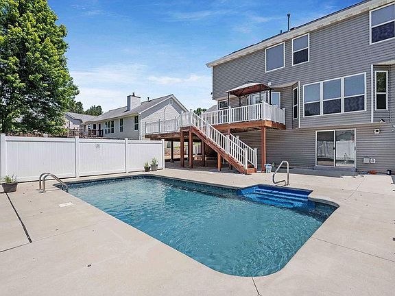 Beautiful two-story with 4 bedroom/3 full bath, 1/2  bath, three car garage, INGROUND SWIMMING POOL, fenced level yard located in Windsor School District.  Living room, separated dining room, family room with large bay window, and breakfast room that walks out to a deck overlooking your own patio and  private inground salt water pool with heater and privacy fence.  Large primary bedroom with bathroom suite and walk in closet, with 3 more upper bedrooms. Laminate flooring in foyer, living room, dining room, and family.  Freshly painted main lever and newer ceramic tile in the kitchen. Partially finished lower level with dance flooring with dance bar and mirrors. Also a walkout lower level. Make your appointment today so you will be swimming in your private pool.  Room dimensions estimate only.