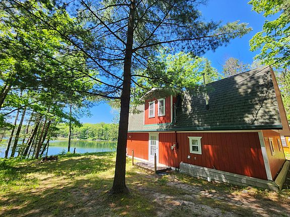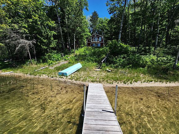 Lakefront rural location with sandy frontage and dock. 2-bedroom, 2-bath modern construction cottage in the woods. Main level features tiled floors, a woodstove, laundry room and exceptional lakeside views. Upper level master bedroom with a walk-out deck, lounge area and bath...5'' well & shed...***All information herein is deemed accurate but is not warranted***