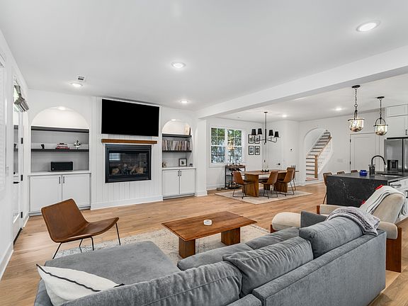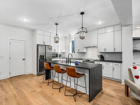 Built in 2022 by Eclipse Construction Group, this exceptional residence combines modern design, generous square footage, and top-of-the-line finishes. The main level features a bright and open floor plan, highlighted by an expansive kitchen with a striking waterfall island, custom white cabinetry, and seamless flow into the dining area and den featuring a gas fireplace.