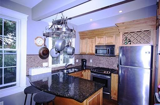 Sunny, large one bedroom with separate sitting/den area in one of South Boston's best locations. Open chef's kitchen with stainless appliances, granite counter tops, custom cabinetry and tile back splash extends to a large living area. Gleaming hardwood floors, high ceilings and tons of light pours through oversized picture windows. This home has central air as well as in unit laundry. Master bedroom is large with closet space galore. Spa like bathroom is tiled with Carrera marble and Jacuzzi tub. The upstairs loft area can be used as a guest room/2nd bedroom, office, baby room, or sitting room. Many opportunities for this space which features a wet bar and also leads out to your very own PRIVATE wrap around roof deck.