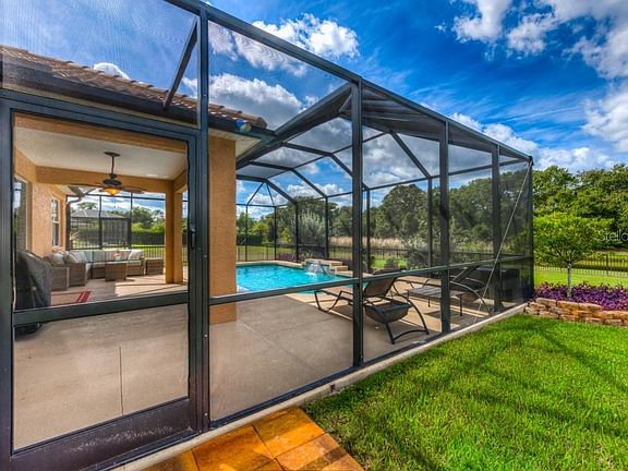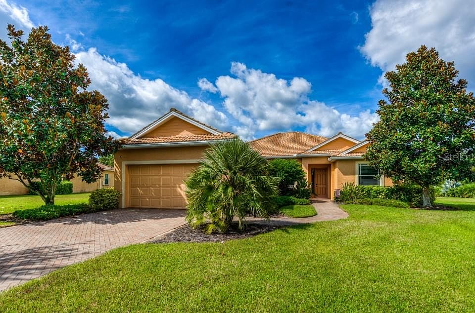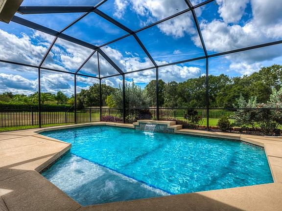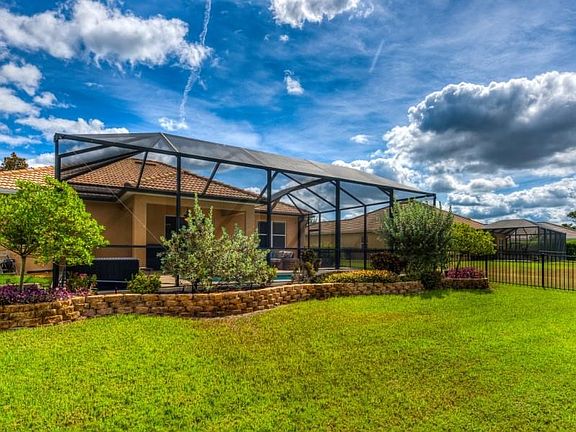Beautiful pool home on a large 1/2 acre fenced lot with an extra-deep garage and low HOA fees averaging only $50 per month. No CDD fees. The open floor plan features a spacious living room with access to the lanai and heated salt-water pool with peaceful lake views. Tile roof and pavered driveway give the home an elegant look. The classic kitchen has tons of wood cabinets, separate pantry and granite counter tops that the chef of the house will love. The formal dining room off the kitchen works for every occasion from entertaining friends and family or just a enjoying a home-cooked dinner. Bonus room can be easily transformed into a home office or creative space. Air conditioning system replaced in February 2019. The garage is 2-cars wide, but 34 feet deep providing lots of room for a couple of cars, plus additional storage or a small shop, or a boat and trailer. Not in a flood zone.