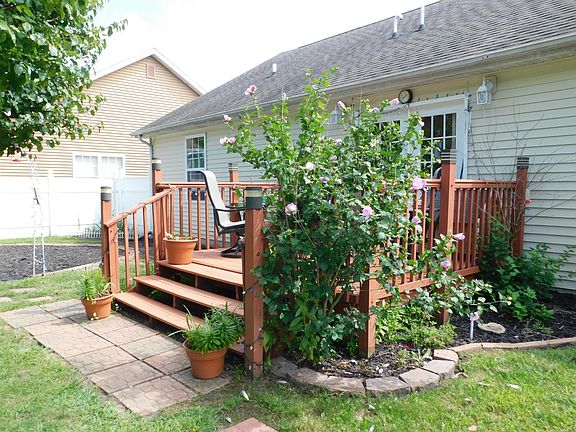 Attractive Ranch Home with great curb appeal. Welcome in, through an inviting front Foyer and Entry Way. Prismatic Lighting will guide you into the Vaulted Living Room with upper stained glass, half moon window and beautiful Tiffany-Style hanging Chandelier. Treat yourself to a large, eat-in Kitchen with all appliances and lots of cabinet space. Extra features include a center Island/Breakfast Bar and Desk Nook. Suds it up because the Master Bedroom is complete with its own private Bath including a separate shower and Whirlpool tub. Every Bedroom has its own walk in closet too. French Patio Doors lead out to a Deck and Park-Like back yard. Lots of gorgeous perennials, landscaping and even a fenced in yard. Don't be afraid to get dirty because there is a huge, finished Laundry Room. At the end of the day, rest assured, house is protected with ADT Security. Need I say More?