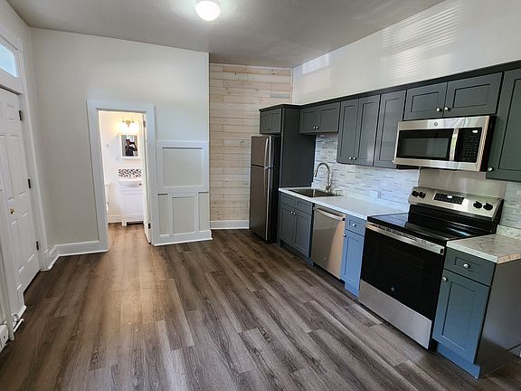 Large 1st Floor One bedroom apartment. Completely remodeled: New kitchen cabinets, appliances, bathroom gutted. Features full tub/shower combo. Large yard to share. Public park directly across the street. Features: Hardwood floors! Onsite laundry and private storage in basement. Off street parking available. WST included. Tenant responsible for unit electric only. Renting single or double occupancy. Minimum monthly income - $3800/month.