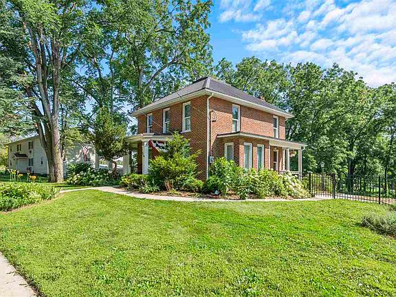 Be the envy of all who visit, and live inside this beautifully renovated historical home! Or, you can own this Bed and Breakfast if you would like it use the historical home for that purpose. Either way, you will own a gorgeous piece of history! This home is as much rich in history as it is in charm! Each room has its own personal characteristics and special "something", whether it is the old red brick walls or polished wood from a century farm house. From the sprawling front porch to the firepit patio off the walk out back yard, you have so much space inside and outside to enjoy. The kitchen has custom painted cabinetry, convection oven and drawered dishwasher and new refrigerator (2021). This home was also once a Bed and Breakfast, so each room has its own half bath! The lower level bedroom could easily be converted to a very cool wine room off of the patio, with its all brick, rounded, walk in closet.. which would make a perfect wine cellar! This oversized lot is loaded with gorgeous landscaping and has a fenced in area. New windows, metal roof, paint, custom walls, lighting, updated kitchen, tankless water heater, new furnace and air (2023) and more. Oversized two stall garage and a large driveway complete with turn around area. This home is perfectly located nearby walking trails, nature park, and easy walk to downtown main