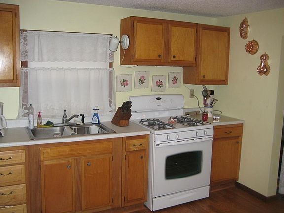 Cute starter home in north Bemidji. 2 bedroom with possibility of a third, full bath. Traditional oak laminate floor (Pergo type), oak kitchen and a double garage too.