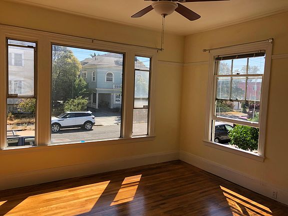 One bedroom unit available in well maintained older building. High ceilings and large windows in every room fill the place with light. * recently refinished old oak floors in all areas except kitchen and bathroom * ceiling fans in living room and bedroom *generous closet space * dedicated water heater and closet sized pantry in roomy kitchen with granite countertops and mosaic tile backsplash * reconditioned vintage Wedgewood stove * building is surrounded by beautiful rose gardens * there is a coin laundry on the nearest corner, just steps away from the building * 96 walk score and 99 bike score make this a walker's and a cyclist's paradise * near Sprouts Market, Grocery Outlet, CVS, Koreana Plaza and other ethnic markets and cafes * walking distance to Fox Theater, Paramount Theater and New Parkway Theater * easy access to 580 to SF, 980 to Berkeley, Telegraph Avenue buses, and 19th Street BART * owner pays for water and trash, tenant pays for garden and electric * on site owner/manager * the backyard common area features a patio with picnic table, chairs and shade umbrella as well as a gas and a charcoal grill Owner pays for water and trash, tenant pays for gas and electric. No smoking in building. Coin laundry on the nearest corner, just steps away from the building. Street parking only. Parking permit from the city is required for daytime parking.
