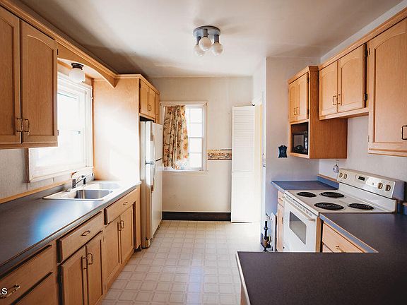 The kitchen has been updated. The upper level has two bedrooms and a half bath.