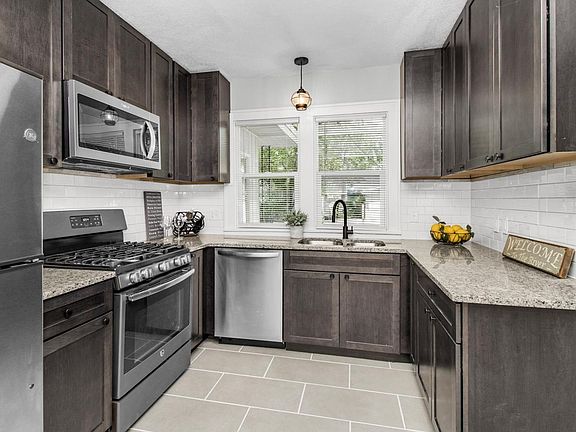 Gorgeous updated home on a large corner lot. New Kitchen w/cabinets, tile, granite, and back splash. New paint and carpet throughout. Updated bathrooms, windows, lighting, plumbing and electrical. Original hardwood floors in living room. Large 4 season porch and a finished lower level with bedroom, family room/flex space and Sauna. Updated landscaping. Great location near parks & restaurants. This home comes with a one year home warranty.