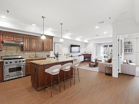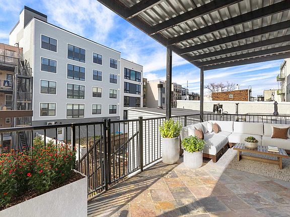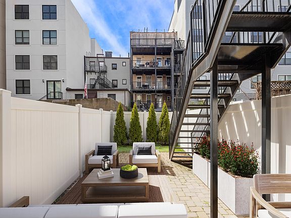 Residence 2 at 514 Adams Street is an exceptional 1391 SF three bedroom, two bathroom full floor home with a highly functional open-concept living and entertaining space, unmatched storage and two private outdoor spaces – a 200 SF covered terrace that leads to a 375 SF yard with turf play area and pavers – in a centrally located boutique condominium building. Perfectly positioned within blocks of express buses serving both New York City and Hoboken Terminal (PATH, NY Waterway Ferry, Light Rail, NJ Transit), Church Square Park and Columbus Square Park, Washington Street and an exciting array of boutique shopping, dining, coffee shops, farmers’ markets and parks/playgrounds that make The Mile Square City so special, Residence 2 allows you and your family to take advantage of one of the most walkable cities in the United States and the Hudson River Waterfront Walkway all while offering unrivaled access to New York City. Residence 2 offers effortless indoor/outdoor living and entertaining, fantastic flexibility and incredible storage – the open-concept living and dining area seamlessly evolves out of a kitchen enlivened by raised panel millwork, a full suite of stainless steel appliances including a Viking Professional gas range, granite countertops, and island with bar seating. The oversized master suite beckons with much needed privacy, two closets and an en-suite bathroom with a soaking tub and glass-enclosed walk-in shower. The generously proportioned second bedroom offers built-in shelving, a closet and easy entrée to an additional bathroom adorned in marble basketweeve tile that is underscored by a marble vanity and glass-enlcosed walk-in shower. Conveniently placed on the opposite end of the home off the living and entertaining area, a third bedroom presents incredible flexibility as a guest room, home office, kids' room/nursery or home gym. Life at home in Residence 2 is further enhanced by central air conditioning and heating, freshly refinished hardwood flooring throughout, ceiling fans in the bedrooms, and a full-size washer/dryer. Additional private storage is available on the ground level under under the deck. All images are virtually staged.