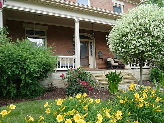 This late 19th century home features large chimneys, dentil moulding, classical columns, leaded beveled glass entrance, and front entrance lighting claimed to be Tiffany. The style of home is a combination of colonial style with contemporary elements. Built in 1901, this historical home is situated on a 1 1/2 lots. The 3 story has a covered front porch, back outdoor living space with fire pit, and well cared for perennial garden. Only owned by 2 families, this home has many features including 5 bedrooms, 3 full baths. 33x12 gym area with shower, 13x13 sun porch, original Quarter Sawed Oak floors with Mahogany strip, whole house fan, 6 fireplaces-4 decorative/2 gas. Additional unique features include 3rd floor maids quarters with a 26x8 space for large walk-in closet or 6th bedroom, back steps to kitchen, 3 stained glass windows, 9 ft ceilings, 13x6 pantry area with built in office desk, and gorgeous original gold leafed cornices. Original blue prints are framed and hanging on wall.