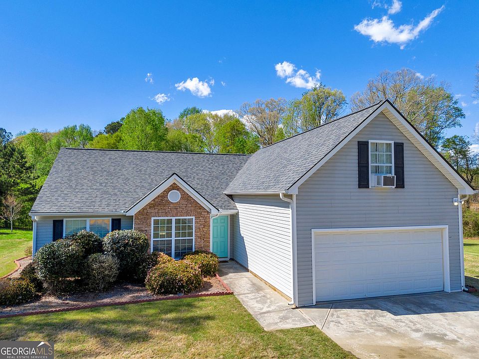 Ranch style home located in a cul-de-sac lot with a private backyard. Large patio with a fire pit, perfect for entertaining. Great room with vaulted ceiling, hardwood-like floor, and a stone fireplace. This home has a separate formal dining room. Eat-in kitchen with granite countertops and French doors that lead to the patio. Owners suite has double vanity with granite countertops, separate shower, and soaking tub. Two secondary bedrooms on the main level share a full bathroom. Finished bonus room can be used as a 4th bedroom, office, or play room!