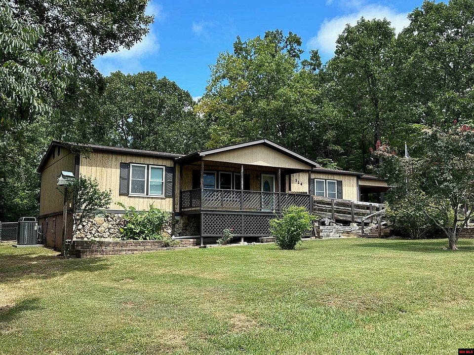 Experience the perfect blend of convenience and affordability with this 3 bed, 2 bath double wide home. Resting on just under an acre of land, this property offers an open concept layout with cathedral ceilings and a split bedroom floor plan. The kitchen features oak cabinets, a pantry, and plenty of counter space. Enjoy an abundance of natural light from 5 sun tunnels throughout the home. Watch wildlife from the sunroom or keep your pets safe in the gated backyard. Ther's also a screen in porch for up close nature enjoyment. Additional amenities include parking areas, a workshop, a lawnmower room and a beautiful grilling area in the woods. Property is ideally located two minutes to public boat launch on Bull Shoals Lake plus only 5 minutes to some of the best trout fishing in the US on the White River.