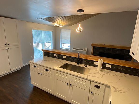 This newly constructed apartment is stunning! Custom built with so much thought put into it. The apartment sits over a shop and comes with two uncovered parking spots. There is a flight of steps to go up to get into the apartment. New stainless steel appliances, gorgeous granite countertops and custom wood bar, mantle and benches warm up the contemporary design. An electric fireplace adds ambiance to the cozy living space. There is room for a large dining room table as well. The spare bedroom has a custom built murphy bed on the wall. Just bring your queen size innerspring mattress (must be lightweight and not memory foam). There is also a custom fold up desk in that room. The larger master bedroom has a large walk-in closet complete with tongue & groove pine ceilings. The large bathroom features a brand new stacked front load washer/dryer set, a walk-in shower, and tons of light. All utilities except trash are included. Pets are considered on a case-by-case basis and subject to a pet deposit and monthly pet rent. Pets must be taken off the property to relieve themselves. There is no fenced yard for pets. There is no smoking inside or outside of the home. There is separate parking out front and the door to the garage must be kept clear. The Owner uses the shop space below and lives on site. 12 month lease required at the listed price. Other terms negotiable for a higher rate. Please inquire! Professionally managed by Frontier West Properties. Please contact Heather for more details or a tour. Please note, we require an application be submitted prior to tours. If you submit at application before noon I can usually tour you the same day!