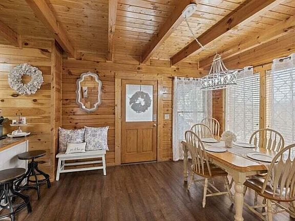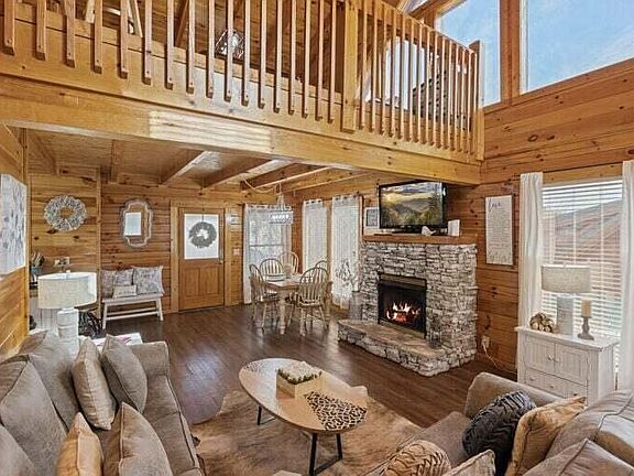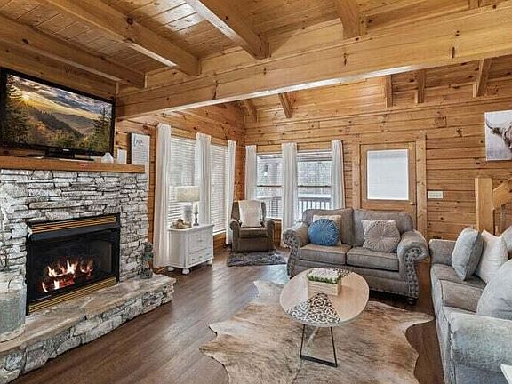Welcome to Eastern Sky! This meticulously maintained and cared for cabin is located within the highly sought after STR community of Blackberry Ridge in Pigeon Forge. This elegant 2 bedroom/2 bath cabin embodies the classic Smoky Mountain atmosphere with stylish amenities. Enjoy all city utilities (water, sewer, natural gas and high speed internet). Step into the spacious 1,664 sq. ft. professionally decorated retreat. This cabin is being sold fully furnished and turnkey. Interior features include hardwood flooring throughout and tongue and groove walls. Spacious living room with stone accented gas fireplace and new sofa sleeper and love seat. There is a large suite on the main floor, a fully equipped kitchen and a large master suite upstairs with a jacuzzi tub and a fireplace. The open-type living space seamlessly connects the living, dining, and kitchen areas, creating a perfect environment for socializing and relaxation. One of the highlights of this cabin is the oversized loft, providing an additional space for guests to unwind with a game of pool and large windows overlooking the main strip in Pigeon Forge. The hot tub and natural gas grill on the covered deck provide a place to enjoy the outdoors. New on demand water heater and new vapor barrier in 2022. Enjoy the community pool that is just a minute's walk away. When you're ready to explore the area, downtown Pigeon Forge is just a 1 mile drive away, with an array of attractions, restaurants, and shops to enjoy. Additionally, Gatlinburg and the Great Smoky Mountains National Park are only a short drive from the cabin. If you are looking for a great investment this cabin is an income producer. Currently on a rental program. Call & schedule your showing today between current guest bookings Call Michele (615.975.1248) to set up a showing. *Owner/Agent