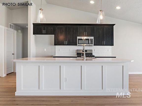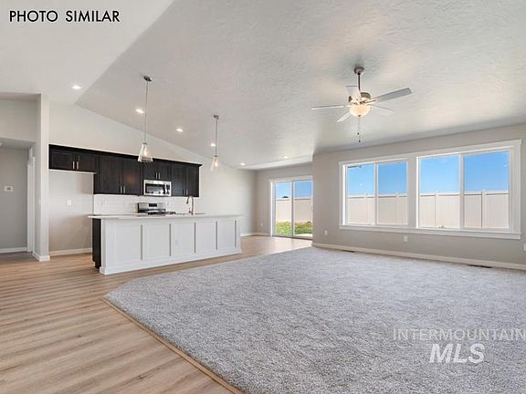 Welcome to the Shoshone by Agile Homes. Located in the new Aspen Meadows subdivision in Fruitland and sits on a large .31 acre lot. It is a single-level home with split bedroom design. Featuring 4 bedrooms 2 bathrooms with an insulated 3 car garage. Spacious open floor plan. Vaulted ceilings and large picture windows provide an ample amount of natural light to flow throughout the kitchen and great room. Gas fireplace in the living room. The extra room is excellent for an office/craft room. The kitchen features our biggest island, quartz counter tops, full tiled backsplash, stainless steel appliances, and has a spacious pantry. Outside you'll enjoy the covered back patio. Home comes landscaped with sod in the front and seed in the back. Overall, the Shoshone is a well-executed floorplan with a great entertaining area. Photos are similar/not the actual home.