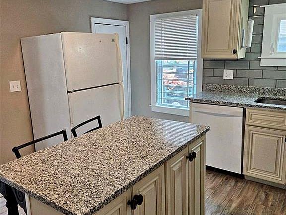 Move in Ready! Adorable Bungalow with 2 Bedrooms. The bedroom upstairs is a spacious room almost the length of the house. The other bedroom is off the kitchen as well as the Newly Renovated Full Bath. Kitchen with Crown Moldings ,Center Island and Granite Counter-tops. Stairs leading downstairs to a finished Common Area where there is New 1/2 Bath, Laundry and Storage Room. it leads outside to a New Solar Fenced in yard with a covering and gas hook up to the house for a barbecue! Make this your own cozy home!