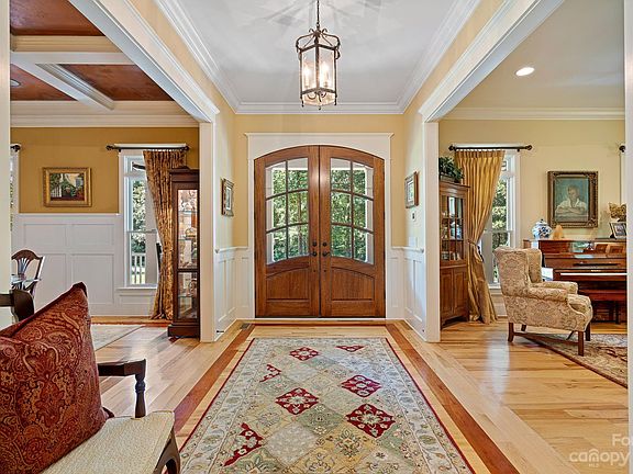 Nestled on a lush 2.87-acre lot surrounded by trees, this custom-built, two-story farmhouse offers the ultimate blend of luxury and pastoral tranquility in a sought-after equestrian community. Just minutes from an elite equestrian center, shopping, major freeways, and vibrant Charlotte, its prime location is unrivaled. A stunning full wraparound porch with brick-lined flooring welcomes you, perfect for savoring views of horses on the nearby trail. The main floor is a masterclass in design, featuring a primary bedroom, spacious living areas, and a gourmet kitchen with woodland views. Additional amenities include a 3-car garage, mudroom, and main floor office. Upstairs, find three large bedrooms, a bonus room, a second office area, and another laundry room. Impeccable attention to detail elevates this home into a class of its own. Options for a Country Club close by is the beautiful River Run Country Club and the Northern Reginal Recreation Center that offers all kinds of activities.