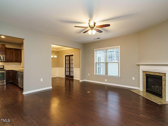 Move-In Ready End Unit in Brier Creek! This delightful low maintenance 3-Bdrm/2.5-Bath is perfect for those seeking a stylish and convenient lifestyle. New paint and carpet throughout! Spacious Family Room, gas fireplace and half bath for added convenience. Chef's Kitchen boasts granite counters, tile backsplash, stainless appliances, including refrigerator and gas range. Elegant Dining opens to a Flex Room complete with French doors, ideal to relax or work-from-home. Primary Suite is showcased by a vaulted ceiling, double vanities, granite, linen closet, oversized tile shower and generous custom walk-in closet. Laundry Room includes shelving for added storage. Step outside into a gorgeous, fenced backyard complete with artificial turf, perfect for entertaining. Hardwoods, insulated garage door, blinds, storm door, remote ceiling fans, crown, wainscoting. HOA maintains yard, exterior, pool/clubhouse, playground. Prime location provides easy access to shopping/dining, I-540/40, RTP hospitals and RDU airport.