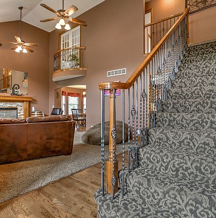 Gorgeous Home nestled in a cul de sac! Extravagant Entry Door opens to Grand 2 sty Foyer & Great Rm w/ascending stairway boasting rod iron railing & handsome stone stacked FP. Open floor plan perfect for entertaining family & friends. Kitchen adorned w/lovely natural light & Dining area w/French doors leading to a deck & level fenced yard w/Koi Pond! MBR w/coffered ceilings & huge walk-in Closet. Master Bath w/dual walk-in shower. W/O LL Fm Rm finished w/kitchen, extra BR/Bonus Rm & Full bath.