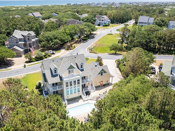 SHOWSTOPPER, EXCEPTIONAL QUALITY CRAFTSMAN HOME ON CORNER LOT IN THE HIGHLY DESIRABLE CURRITUCK CLUB! NOT RENTED/METICULOUSLY MAINTAINED! SHOWS LIKE NEW! This 3-level craftsman, custom-built home in The Currituck Club is situated on a large corner lot backed by trees. Impeccably updated and maintained with unrivaled quality throughout all 3 spacious floors. This grand home has more than 3,000 sq feet of living. Open and spacious floor plan on each floor that’s perfect for family gatherings, entertaining and spreading out. All 5 bedrooms are roomy, 3 bedrooms include en suite bath and private, covered porch. Special high-end features include hardwood and Travertine tile flooring, gourmet upscale kitchen with two dishwashers, a wet bar on the first and second floors, Brazilian hardwood porches, etched driveway, beautiful exterior and interior trim work and vibrant coastal color! The backyard is exceptionally landscaped and private with a charming stone patio and garden space beside the sizable pool area. Enjoy the multiple outdoor spaces including third floor sun deck, front covered porches on main and second floor, and lovely extended pool area! Please inquire about the extensive Special Features/Recent Improvements sheet. Great location at the south end of The Currituck Club. This home is just a quick trolley ride or walk to the beach access and a few local favorites including Bacchus Wine & Beer Bistro, Metropolis, Low Tide Restaurant, and Bluewater Seafood Market. Enjoy golf community living at its finest with all of the amenities of The Currituck Club! Designed by the renowned Rees Jones, The Currituck Club golf course has been rated in the top 25 golf courses to play in North Carolina by Golf Digest. The Currituck Club features a modern clubhouse, full driving range and practice green. Additional amenities include gated community with guard house and security, deeded beach access, beach valet service, trolley service, a summer full of activities and programs, 3 community pools with restrooms, kiddie pool, walking and biking trail, fitness and activity center, beach rental equipment (The Surf Shack), bocce ball, shuffleboard basketball courts, lighted tennis courts, cornhole, and volleyball! This is a MUST SEE!