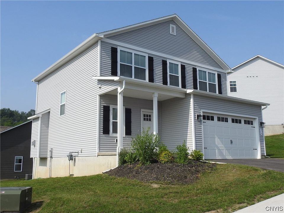 4 bedroom 2.5 bath house in Chenango Hill in the village of Hamilton. Corner property with back deck and country views in the new Chenango Hill Development for primary residence. Large and open kitchen/living room/dining room combination with half bath and attached two car garage on the first floor. Granite counters and all new appliances, corner pantry. Glass slider to southern facing back deck. Heatilator Novus fireplace. Upstairs are 4 bedrooms and 2 full baths and large laundry room. Basement has full size windows, could be finished to more living space and or a possible 5th bedroom and future bathroom. Gas boiler, central Air, tankless Hot Water. Home Owners Association maintains the lawn mowing and snow plowing.