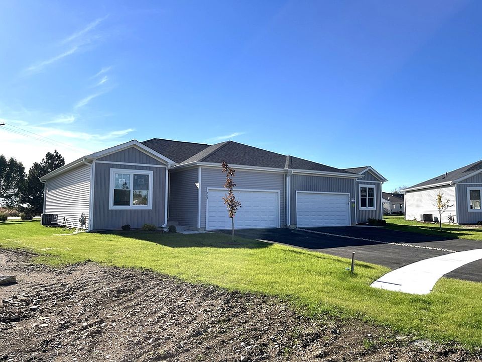 BRAND NEW 1/2 DUPLEX RANCH, LUXURY HIGH-END QUAILTY CONSTRUCTION. 2 BEDROOMS, 2 FULL BATHROOMS. HIGH CEILINGS. GORGEOUS HARDWOOD FLOORS THROUGHOUT. GORGEOUS KITCHEN OVERLOOKING GORGEOUS CATHEDRAL CEILINGS IN LIVING ROOM & DINING AREA, HIGH END SHAKER CABINETS, QUARTZ COUNTERTOPS, WIDE SPACIOUS ISLAND BREAKFAST BAR, BEAUTIFUL TILE BACKSPLASH, STAINLESS-STEEL APPLIANCES, REFRIGERATOR, STOVE, BUILT IN MICROWAVE, DISHWASHER, DISPOSAL, PENDANT LIGHTS. RECESSED LIGHTING. MASTER BEDROOM SUITE WITH ITS OWN PRIVATE FULL BATHROOM THAT HAS BEAUTIFULLY TILED FLOORING, DOUBLE SINKS, WALK IN CLOSET. GORGEOUS HARDWOOD FLOORS THROUGHOUT. CONVENIENT MAIN LEVEL LAUNDRY ROOM. FULL BASEMENT WITH AN EXTRA FULL BATHROOM ROUGH-IN. CONCRETE PATIO IN LARGE PARK LIKE LUSH GREEN BACKYARD. LARGE EXTRA 2 CAR ATTACHED GARAGE. HIGH EFFECIENCY FURNACE. CENTRAL AIR CONDITIONING. CLOSE TO ALL THE SHOPPING IN TOWN, WAL-MART, WALGREENS, RESTAURANTS, METRA STATION, ETC. INTERIOR PHOTOS ARE FROM A SIMILAR UNIT. LOT SIZE AND ROOM SIZES ARE ESTIMATES. NO HOA DUES! NO ASSOCIATION!