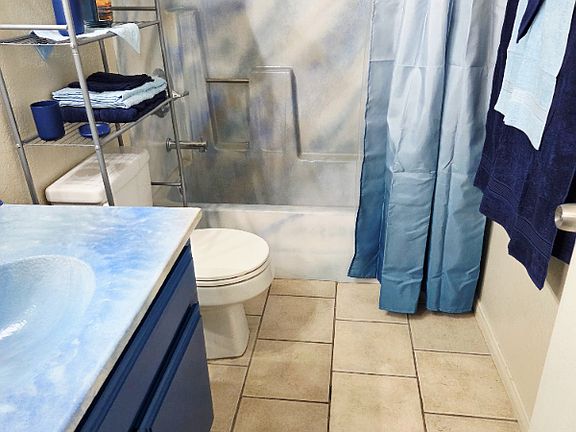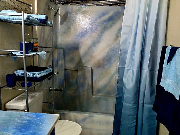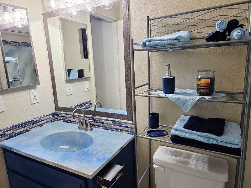 TRENDY EPOXY REMODELED bathroom and Kitchen, NICE sinks/faucets, whole place remodeled a couple of years ago.