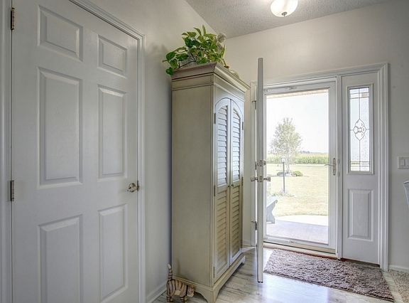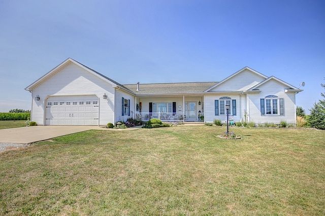 Pristine Country Ranch Home on 7.1 acres in Unit 7 Schools! The Southern style 23 ft covered porch welcomes you to this immaculate 4 bedroom, 2.5 bath , 2car 2100 sq ft home! Features include soaring 9 ft ceilings, a large family room with gas log fireplace, beautiful white kitchen cabinets with breakfast bar, french doors that lead to deck and pergola from dining area,walk in closets in all bedrooms, master suite bath with dual vanities, separate 5 ft shower and tub,, wheelchair accommodating doors and hallway, deck is 12x14 with low maintenance vinyl compost floor, high-efficiency furnace, 50 gal water heater, laminate flooring throughout except for living room, spacious laundry room, oversized heated 24 x 24 ft garage, beautiful landscaping with numerous perennial gardens, 12.x 20 yard barn with loft. deep 44inch crawlspace, private well with inline filter. Would make a great horse property ! Only 5 miles from I-57.