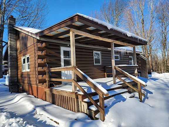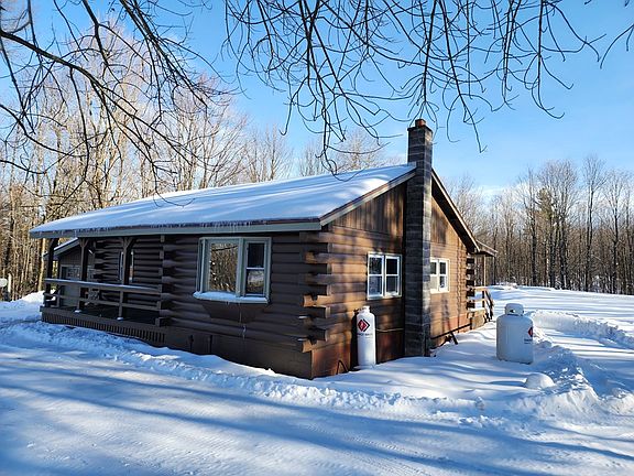 This home has undergone so many updates. It was converted from a 3 bedroom to a 2 bedroom/2 full bath. Great opportunity for not onlyyour new home, but an Airbnb. Located close to trails and the on the outskirts of the Adirondack Park, equal distance to Malone andPotsdam and a few extra miles to Massena. Start with the new tiled bathroom off the bedroom. Brand new kitchen cupboards andcountertops. Fresh paint throughout, new carpet in the bedrooms, and new quality laminate flooring in kitchen and livingroom. Rustic logaccent walls throughout. Updated windows and new interior doors and moldings. Garage is newly sheet rocked and insulated with new man-door to the back yard. Shingled roof done in 2022. If you are in the market for a log home, this property needs to be checked out. There is alarge shed/barn that I was told has held a couple horses and the lot is certainly big enough, with 2 acres. Call for your showing now!
