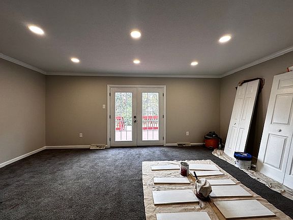 - Exterior features: Freshly painted a nice, neutral gray with bright white trim, Lawn, New recess lighting in living room and all 3 bedrooms, Slider in living room