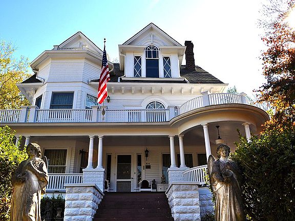 Historic 1905 Colonial Revival home. Monte Vista is one of the most photographed houses in the historical district. This 2 Story home is still resplendent with original millwork and fixtures throughout from a bygone era. The covered wrap around porch is perfect for southern living. When you step inside you find the original wood floors intact and will be facing a wonderfully restored and functioning fireplace. The ladies and gentlemen parlors still have the original wooden pocket doors and both feature bay windows. The gentlemen parlor features the 2nd working fireplace and is flanked with bookcases and decorative windows and the ladies parlor has the customary entry door to the front porch. The kitchen has been updated but attention to detail was taken even down to the tiled floor inlay. The music room features another bay window and the formal dining room opens to a small back porch. The front staircase is fully intact including period light fixtures and a window seat. And the back staircase is the secret way up to the Master En-suite. The two guest bedrooms are large and the guest bath has been fully updated. The Master En-suite features the bedroom with attached sitting room, a nursery, and an updated bath with a claw foot soaking tub. The millwork is beautiful and the touches the owners have added make this a one of a kind home. The home has many updates including the electrical, plumbing, and roof. There is also a full attic with original beadboard which could be converted into a wonderful family room. Located in the Historical district and within walking distance to the park. Charm and Character abound in this amazing home.