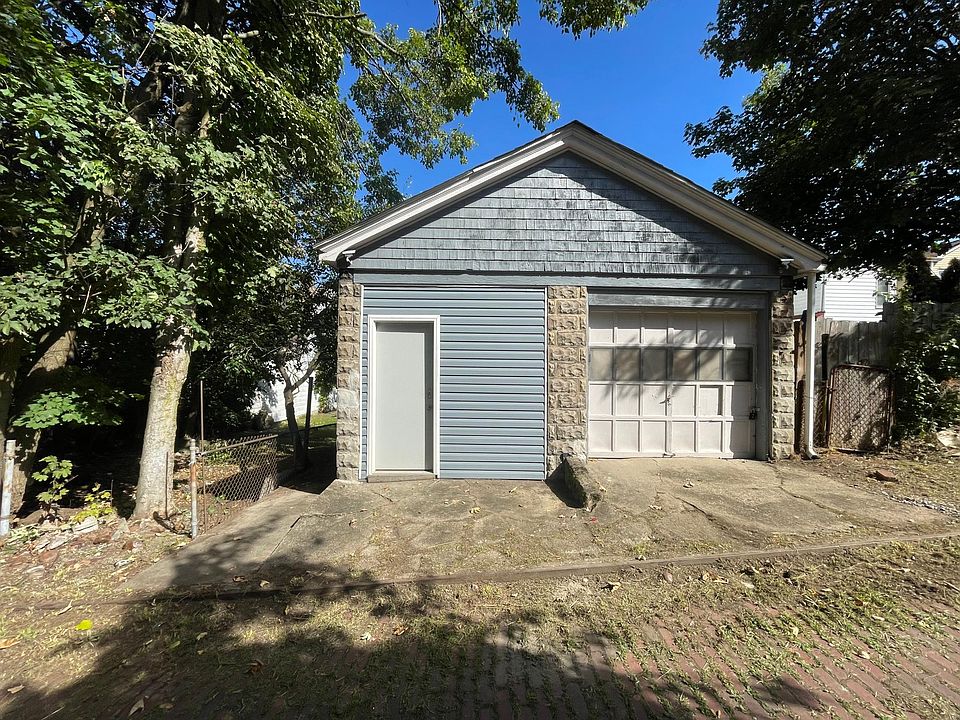 Garage for rent for storage only..2 sided each are 9' x 19'. One side has large garage door measuring height 6.5 feet Wide and 8 feet tall. Width of garage inside is 9ft, and the length is 19ft. Left side has a regular man door and same length and width inside as right side. Storage only, there is electric that is included but only lights there are no outlets. Cannot be used to work on cars or motorcycles. Storage only. $175 per month includes electric, must sign lease. 1 year