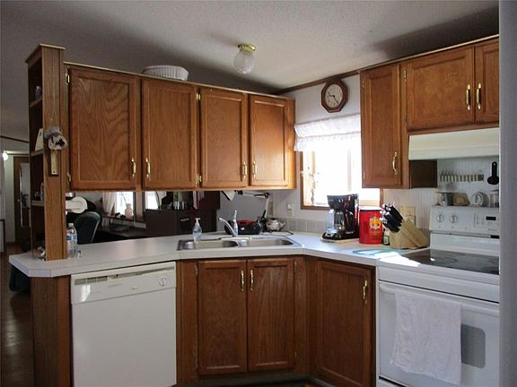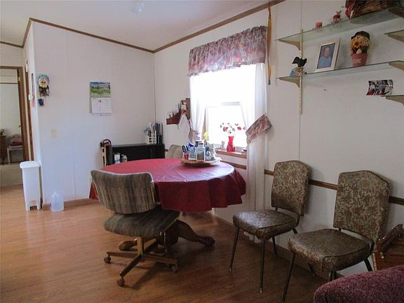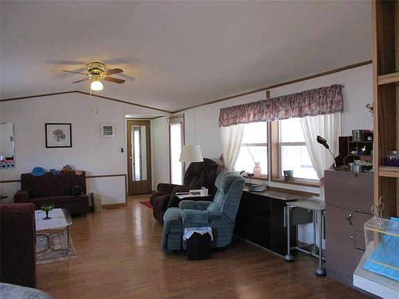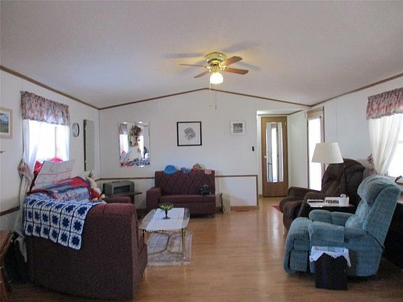 Great manufactured home priced to sell quickly! You will want to spend your summer on the large covered south facing front porch. There is a small greenhouse to start your garden or house plants. The 2 BR 2 BA home has an open floor plan and bedrooms are at opposite ends of the home. Kitchen and dining area are open to the living area so it lives larger than the square footage indicates. Master bedroom has a large closet and a 3/4 bath. Great bonus is the 288 sf basement addition for storage with nice steps to access from the exterior. Watch for the surprises as the front yard bursts into bloom with lots and lots of flowers this spring and summer. Live in a small town atmosphere where you learn to know your neighbors, there is a lot of history, are close to the park, a golf course, the Library and State Parks are a short driving distance.