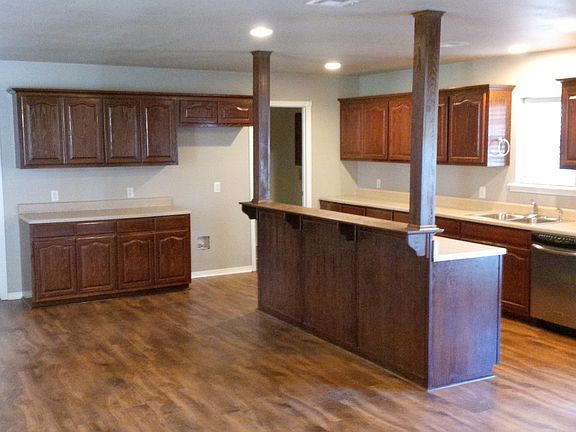 Very nice three bedroom, two bath, two car garage home in Fort Gibson, OK. Open floor plan. Beautiful flooring, spacious Master bathroom with jacuzzi tub. Island kitchen. Interior utility room. Covered front porch and back patio. Large 1/3 acre lot with mature pecan trees and privacy fenced back yard. Gas and Electric. Very clean home.