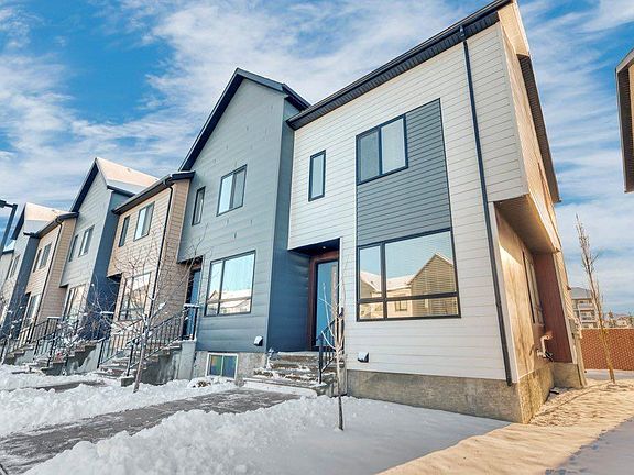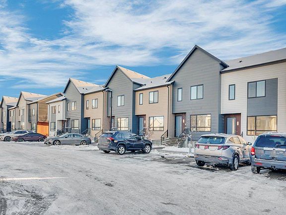 Your new home awaits in arrive at Redstone Way. This gorgeous end unit townhome will blow you away with its sleek, modern finishes and thoughtful design throughout. And with 1,880 sq ft of developed living space this home also offers amazing value. Located in the vibrant community of Redstone you’ll enjoy a growing number of local amenities. Stepping into the front door you’ll appreciate the spacious entryway with built-in hooks for hanging outerwear plus a great size closet. You’ll immediately be wowed by the open concept design enhanced by 9’ ceilings and tons of natural light flooding in from the big windows including an extra side one thanks to it being an end unit. A soothing grey and white colour palate will allow you to easily customize the space with your own decor. The space flows seamlessly from the front living area to the rear kitchen with a nice sized dining area in between. You are going to fall in love with this kitchen and its sleek white cabinetry, gleaming stainless steel appliances, oversized subway tile backsplash, granite counters and centre island with seating. Luxurious Vinyl Plank flooring throughout is both beautiful and durable. A back door allows easy access to your back patio and shared lawn space for outdoor living. A 2 pc powder room is discreetly located up a couple of steps for privacy. Upstairs you’ll find 3 bedrooms including the primary with its own 4 pc ensuite. The other 2 bedrooms share the other 4 pc bath. And you’re going to love the convenience of upstairs laundry and ample storage space. The fully finished basement is the perfect space for your teenager, guests or extended family members to call their own. They’ll enjoy a nice sized living area, a large 4th bedroom and full bath plus you still have ample room for storage. This terrific home comes complete with 2 dedicated parking stalls close by as well as EV charging stations for residents. This unit has rough in for central air conditioning. Pets are welcome in this complex with some restrictions but don’t worry about bringing your lawn mower or snow shovel as common area maintenance and snow removal are included. The master planned community of Redstone offers 2 new schools sites, well-maintained green spaces, scenic walking trails, a variety of parks & playgrounds as well as close proximity to shopping, medical clinics, restaurants and the Calgary airport. With easy access to transit and both Stoney & Deerfoot Trails you are well connected to the rest of Calgary. Your are going to love living here!