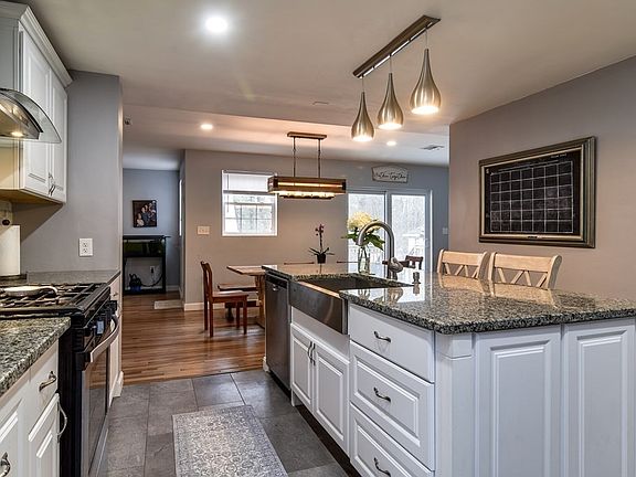 Beautiful expanded Cape style home. Celebrate the old with the new in this newly remodeled original home and massive 2019 addition. The first floor of this home boasts a gorgeous cabinet packed white kitchen with grand island, large dining room with sliders to oversize deck, nice family room, two offices, formal living room with fireplace, sitting room/den and a full bath. The second floor offers 5 great size bedrooms including a master with walk-in closet and laundry, a game/hangout room and a beautiful full bath. There is a finished room in the lower level, a two car garage and a great level back yard. The two car garage and location close to shopping, major routes, schools and transportation are an added bonus. The massive addition was added in 2019 along with the new water heater, gas heating system and central air.
