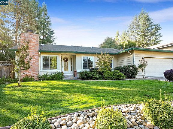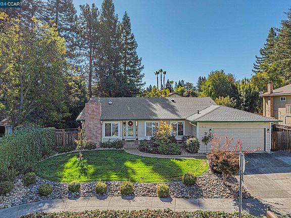 This charming single-story home is warm and welcoming, featuring a beautifully updated 4-bedroom, 2-bath layout with an open floor plan and vaulted ceilings in the living, gathering, and dining areas. The kitchen is a standout with custom cabinetry, while the cozy breakfast nook offers lovely views of the scenic backyard. The entry and living room boast gleaming hardwood floors, and the hallway showcases elegant slate flooring. The spacious primary bedroom includes a remodeled en-suite bathroom with a large stall shower and glass blocks—a true must-see! Newer furnace & brand new water heater. One block to Osage Park and steps from the Iron Horse Trail. The private backyard is generously sized, perfect for relaxation or entertaining. Located in the highly desirable Danville Station area, this home is just one block from Osage Park and the Iron Horse Trail, and four blocks from the community pool, lighted tennis courts, and a playground. Award-winning John Baldwin Elementary and Charlotte Wood Middle School are conveniently nearby, and quaint downtown Danville is only 2 miles away.