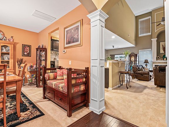 Welcome home to this inviting & well maintained home in the Oakley Pointe neighborhood. Picture yourself relaxing on your full front porch on a quiet street. Upon entering the dark wood floors, high arches, & crown molding invite you in. There's an opportunity to get creative in the separate dining room or flex space. You'll notice the pristine clean kitchen, large island with Silestone countertops. Get cozy in front of the gas fireplace in the spacious family room with very high, vaulted ceiling. Your large owner's suite is DOWNSTAIRS and offers a relaxing ensuite bath with a garden tub. Entertaining is easy in the loft/game room with a breathtaking view of the first floor. This beauty is well cared for & move-in ready. The neighborhood includes a community pool, park, & boat storage!