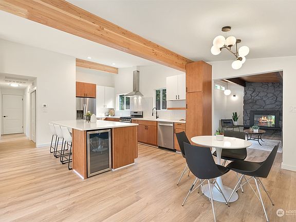Meticulously restored mid-century modern marvel in elegant Edgemoor neighborhood. Attention to detail everywhere you look in this single-level home. Upon entering you will be taken back by the gorgeous exposed beams, vaulted ceilings, and open floor plan. Huge 8 ft island with quartz countertops and an abundance of natural light. The 2nd living space with midcentury charm and fireplace walks out to a large deck overlooking the beautiful and private backyard. Primary room with custom closet. 3 more rooms on the other side where one would make a perfect home office. Full bathroom with floor-to-ceiling tile work. Detached garage and large storage shed. Close to Bayside pool, trails, Fairhaven and Fairhaven Park make this the perfect location.