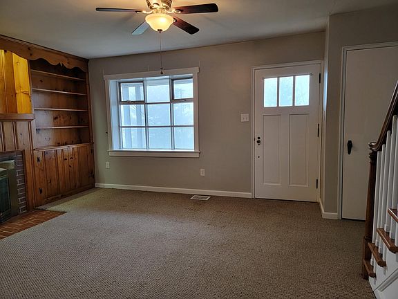 This wonderful home is sitting pretty on a hilltop, giving it lots of privacy from the road. You'll enter into a bright living room with a big window and built-in shelving. The eat-in kitchen offers warm colors, plenty of pantry and storage space, and a modern tile backsplash. The three bedrooms are all on the first floor with decent-sized closets. The second floor attic has two rooms for storage and an unfinished basement completes the home. There is an adorable patio in the back for outdoor enjoyment, plenty of room for parking, a shed for outdoor storage, and great views in the back of a grassy area and trees. Come take a look at this lovely hilltop home! One year contract renews month-to-month after the first year.