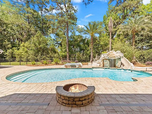 With impeccable details and finishes throughout, this custom brick home built by Porter Chandler offers luxurious living at its finest in Pine Tip Hills. The spacious 6800 sqft interior features 7 bedrooms, 5 full bathrooms, 4 half bathrooms, and 2 flex rooms, providing ample space for family living or entertaining guests. 2022 Roof. Step inside the grand entry foyer and be greeted by a light-filled interior adorned with heart of pine floors, decorative millwork, soaring ceilings, 4 fireplaces, and plantation shutters. The chef's kitchen opens to the family room, creating a seamless flow and perfect gathering spot. Primary suite on main level features spa like bath and walk-in closet. Nestled on a beautifully landscaped lot. The backyard oasis with extensive outdoor features includes pool house, saltwater pool with grotto, slide and fountain, hot tub, and recently refurbished koi pond with water feature and expansive pavered patio with custom fireplace. All ideal for relaxation and outdoor fun. Just in time for Summer! Zoned for top-rated schools and conveniently located near shopping and dining, this home is a true gem in a desirable neighborhood.