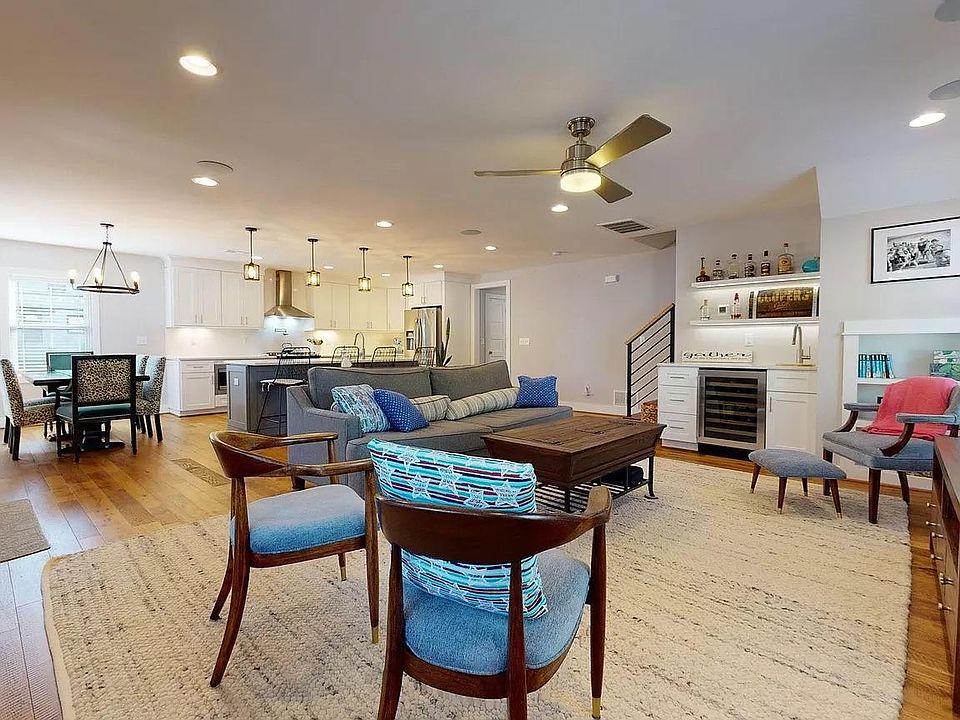 This amazing home in the Hunter Park subdivision of downtown Raleigh is a perfect combination of location and luxury that will blow you away! It packs tons of incredible features including gorgeous hardwood floors throughout, a huge kitchen island with bar seating, a wet bar with a wine cooler, gas stove, stainless steel appliances, and even a pot filler faucet above the stove. Washer / dryer included. The massive primary bedroom includes a large walk-in closet and enough space for a reading corner or office, and its bathroom includes a huge walk-in shower and separate water closet. The fenced-in backyard includes a patio plus storage on the side of the house. The home is conveniently located with the heart of downtown just a 5min drive away. Easy access to Hunter / Ligon / Enloe magnet schools within 5 minutes drive, and Shaw and NC State University within 10. Only 20 minutes from RDU international airport, and 25 minutes from Research Triangle Park (RTP). Home comes unfurnished; furniture in photos shown for staging purposes only. Minimum 12mo lease. Must have income of at least 3x the rent. One month security deposit. Tenant responsible for utilities. Pets allowed with fee. No smoking. Available October 1, 2025.