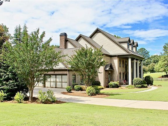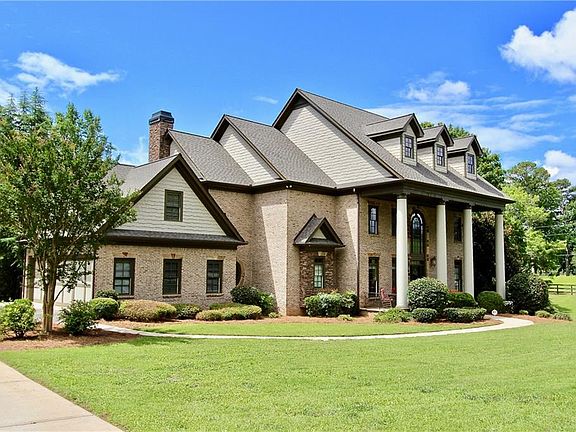 Exquisite executive home. 4 sides brick & stone exemplifies grandeur. Entertain in style on covered flagstone porch or sip sweet tea in summer on covered composite deck. Greet guests in the 2 story foyer w/sparkling chandelier, pristine hardwoods & luxurious built ins. Chefs kitchen, exotic granite & large island. 4 fireplaces. Office w/wet bar. Master/main w/sitting room. 3 spacious bedrooms up w/private baths, one has separate tub & shower. Massive bonus room. Huge unfinished bsmt stubbed for 2 baths & kitchen. Patio. Level 3+ acres, pasture w/pond. zoned AG.