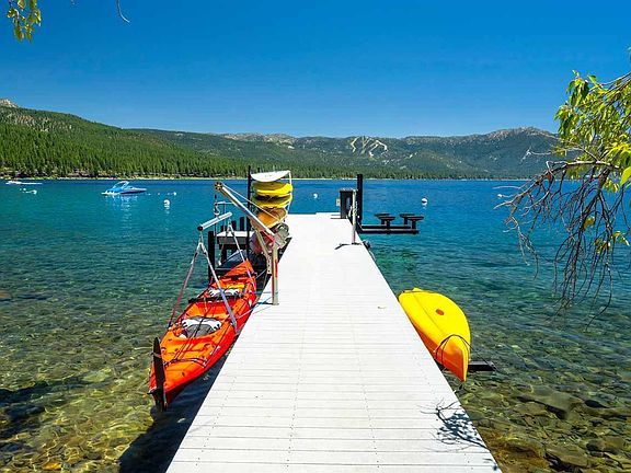 Exquisitely remodeled in 2012 lakefront home on .40 acres with 102' of lakefront, a shared pier with adjustable catwalk, two buoys, beach area and swim platform. In-law quarters with a granite kitchenette, gas potbelly stove, murphy bed, marble bath and lakeview deck are below the lakeview two car garage with abundant extra storage. Fully furnished. Start living the Lakefront lifestyle today!