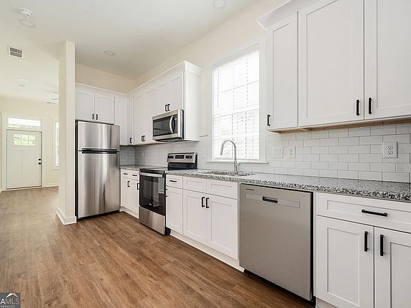 NO DEPOSIT FOR QUALIFIED APPLICANT This beautiful 3 bedroom home is 100% percent new construction and has never been lived in. Adorn with all modern touches and 11 foot ceilings throughout, this beauty offer everything needed for intown living. Within walking distance to the beltline and Mercedes Benz/Falcons Stadium. Five minutes from west midtown. Close to Georgia Tech University. 3 bedroom/2 bath home has a large sitting porch with a view of the downtown skyline. Pre-wired alarm system and modern lighting throughout. Ceiling fans in all bedrooms. Brand new kitchen with upgraded Whirlpool appliances a stackable LG washer/dyer combo. Two off street parking spaces in back of house. Owner pays landscape and monthly pest control services. Schedule a viewing today and bring in Spring in this perfectly placed house in the hotly renovated neighborhood of English Avenue. Proudly listed by DIMENSION MANAGEMENT.