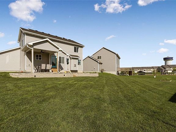 Crisp & Clean with a cozy comfortable feel. This 2 -story home sits on a quiet cut-de-sac, & walking distance to the new city park. Decorated in soft grays, stainless steel appliances, granite counters & dark cabinets. Also a nice size pantry. Master bedroom has walk in closet, extra long vanity to spread out, soaker tub w/ tile walls. 2nd floor laundry. 3 Car Garage is very spacious with extra room for shelves, etc. Covered back patio. Perfect Iowa exposure for ice melt on the driveway & shade on the back of home during hot summer days. Bonus: professional landscaping both front & back. Tax Abatement runs through 2022